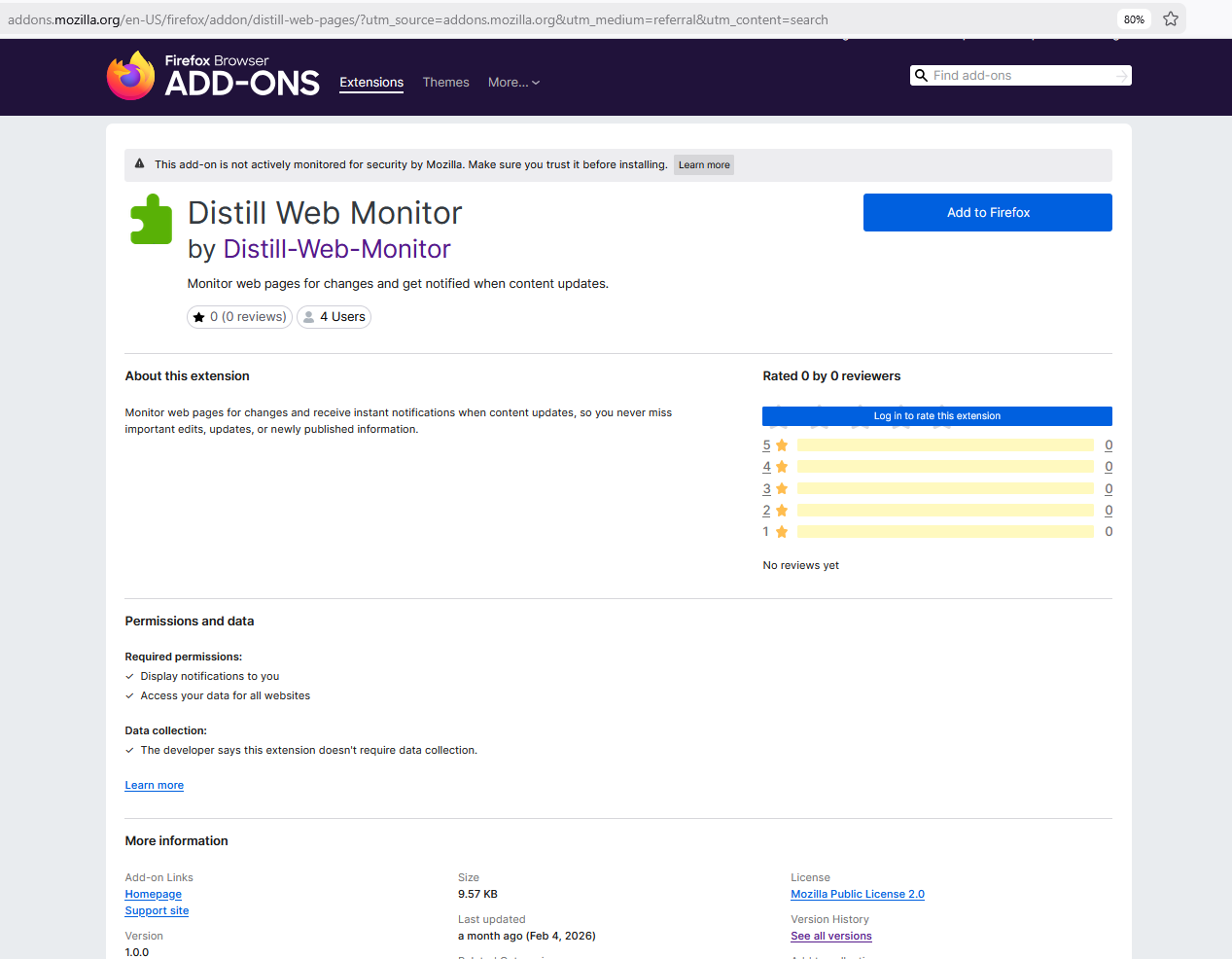 I found a new version of Distill Web Monitor (dated Feb 4, 2026) on the Firefox Add-ons site, but it looks sketchy. Have you started updating the Firefox version of the extension?