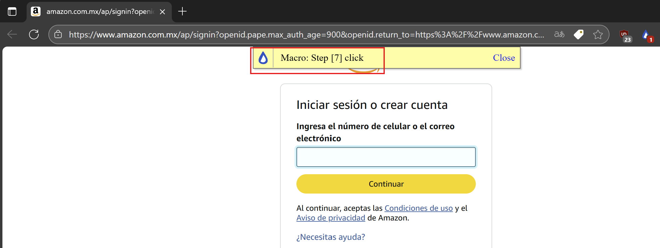 Amazon macro action is one no matter the URL. This means that if I have 3 monitors in amazon, the Macro will work on any of them.