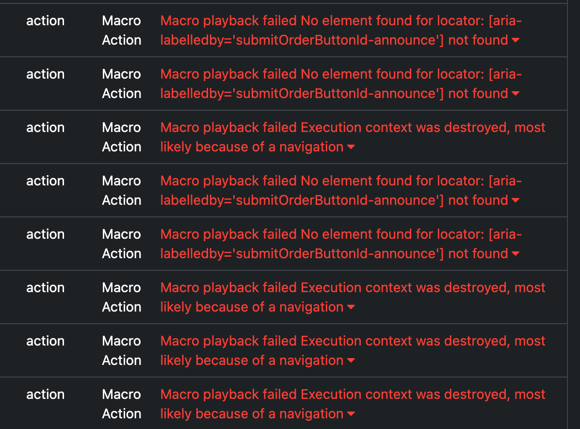 the messages where the element was not found are logged after the macro ran successfully but failed to find the element in the second last step.