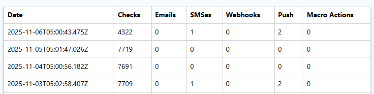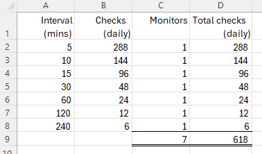 Hi there, last month I ran out of checks so this month I’m trying to plan things out better. I’ve read the docs and for my 7 monitors, at these frequencies, I /think/ that I should be using around 620 checks/day.