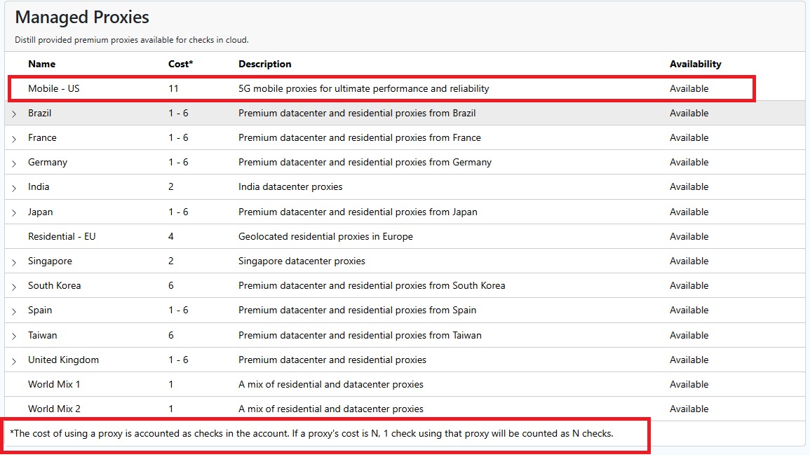 But the docs do state that the “11” in the dropdown was there to warn me that checks via that proxy were going to incur an 11x cost. So… it was my mistake, not a problem with Distill.io!