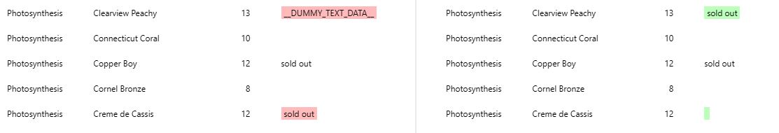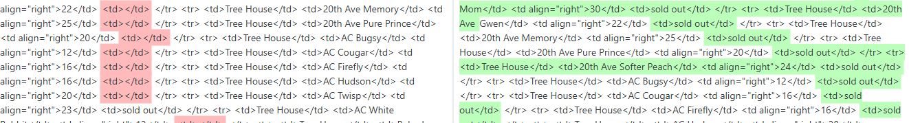 When an item is restocked and ‘sold out’ text disappears, there is not a matching behavior going the other direction/in the right column. Instead what appears to be a highlighted single space. I found an example with both types of change near one another. Anyway, it’s not a big issue for us, just wondered if you had insights.