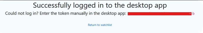 “Successfully logged in to the desktop app”“Could not log in? Enter the token manually in the desktop app: [Long Alphanumeric Code]” (Example image attached)